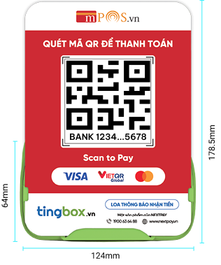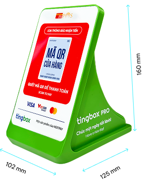 MMàn hình lớn của Tingbox – Loa Quốc Dân hiển thị rõ ràng mã QR của cửa hàng và từng đơn hàng. Điều này giúp ngăn chặn hiệu quả việc dán đè mã QR giả mạo. Mã QR cũng tự động cập nhật khi bạn chuyển đổi ngân hàng, đảm bảo mọi giao dịch luôn thông suốt.